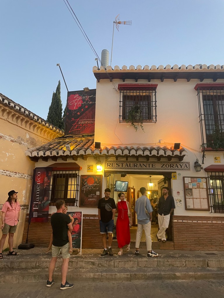 We took a train to Granada and checked into our incredible Airbnb with its view of the Alhambra. It was the best Airbnb of the trip. Camille booked us tickets to dinner and a flamenco show which we both loved. It was at that dinner that I had my first great experience with Iberian Ham and fell in love. That night we walked around the gorgeous white city and got gelato.