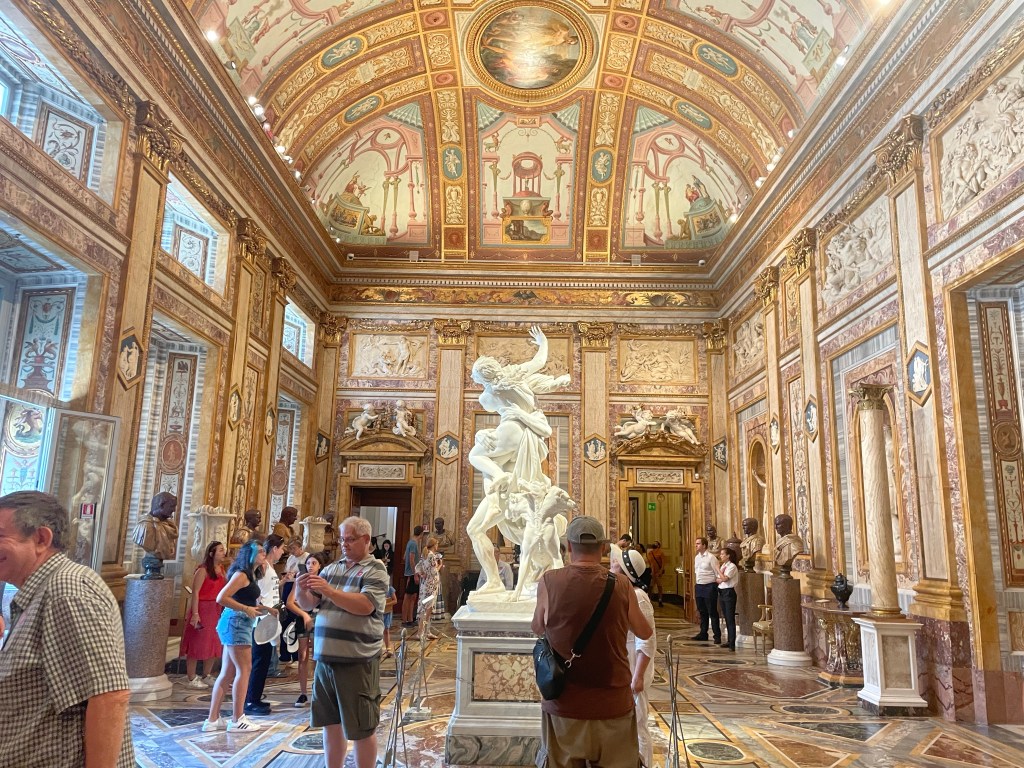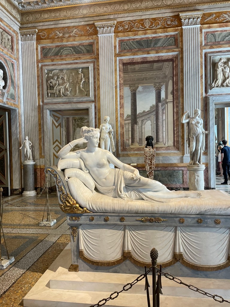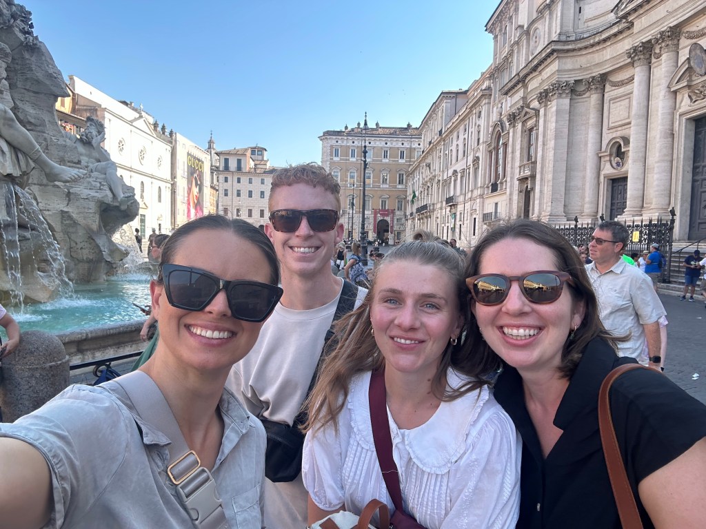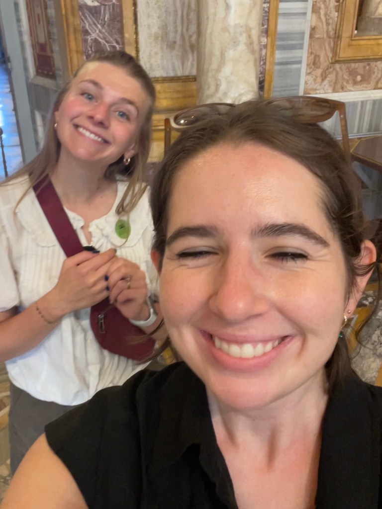 After going to bed at midnight, we were up at 7 the next day to walk around Rome. (Morning people!!) We went to Trevi Fountain, than over to the Spanish Steps, than up to the Galleria Borghese. I loved the museum, it had a ton of incredible sculptures. We walked around then made our way to the Pantheon, wandering into a bunch of churches, then made our way over to the Tiber which I got confused with the Rubicon. By this point we had walked about 11 miles and I was exhausted. Camille and I were operating on very little sleep, it was so hot, Taylor and Claire (hikers that they are) looked like they weren’t even breaking a sweat. I suggest that we break for a few hours, get showered and meet up for dinner and they are like “Great lets walk to the metro, its like a 10 minute walk” and they failed to mention that it was 10 min uphill and at this point I feel like I am going to pass out. I look over at Camille who looks like she is doing fine and I am like “Am I just insanely out of shape, what is going on.” We get to the Metro, get back to our hotel and Camille says “I AM AT MY PHSYCIAL BREAKING POINT” which made me happy because I was like, its not just me! We got dinner and said goodbye and then Camille and I got ready to wake up at 3am ONCE AGAIN to catch a flight.