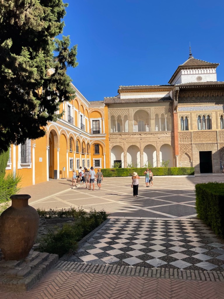 Seville was gorgeous but I wonder if I feel that way because we actually had time to see some of the famous sites. We got there, walked around a little, then went to the Palace. I LOVED the different tiles and textures of the place. It was Christian, than Moorish, then flipped a bunch more times and is still used as a palace for the royal family today when they visit. The gardens were incredible. After that we went to the central park in Seville and enjoyed these gorgeous buildings and people watched. We took a carriage ride back to our Airbnb and then got some food (we almost got locked out of our Airbnb because our phones were almost dead– it was a tense couple of minutes).