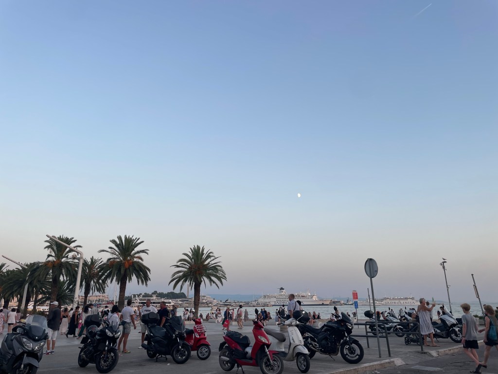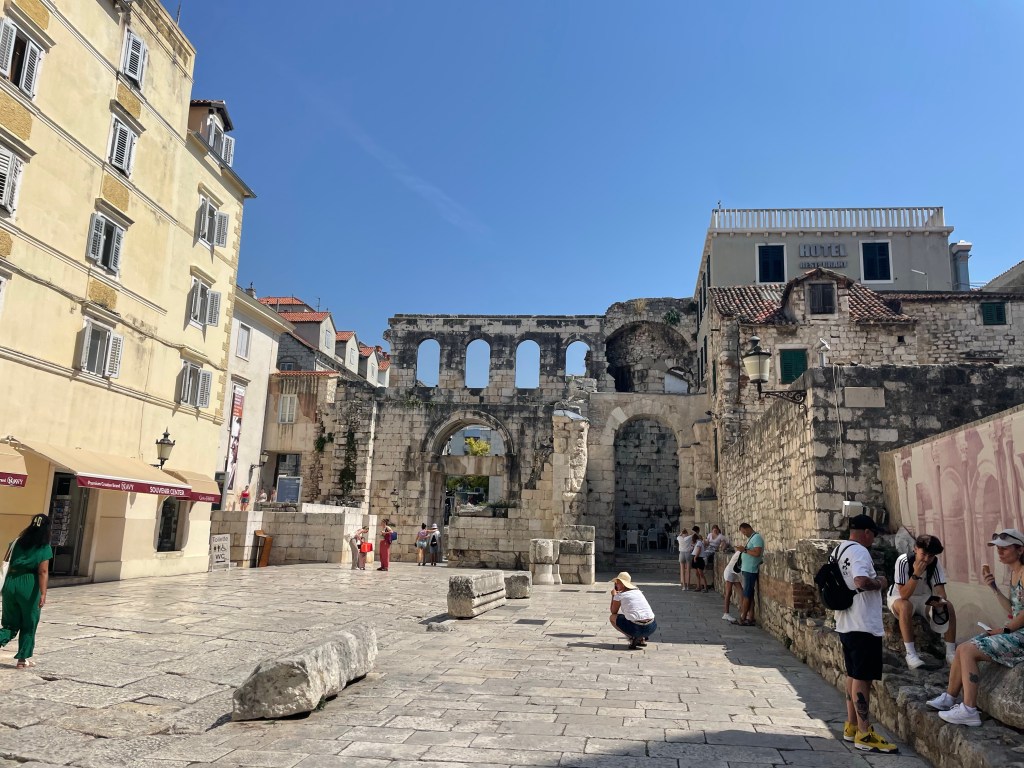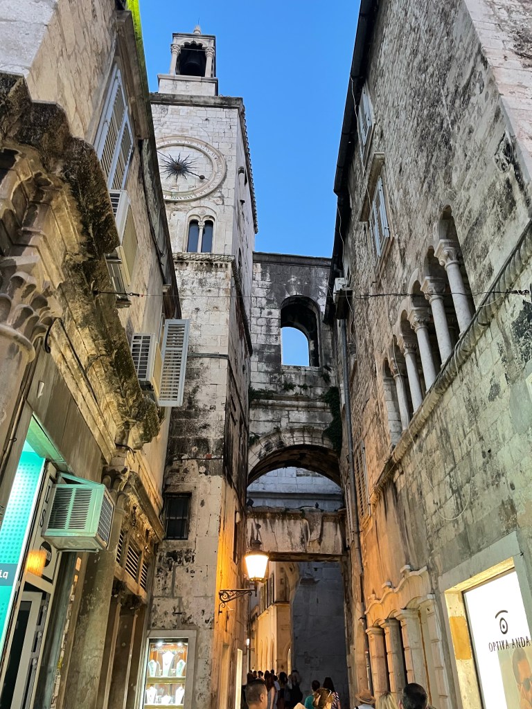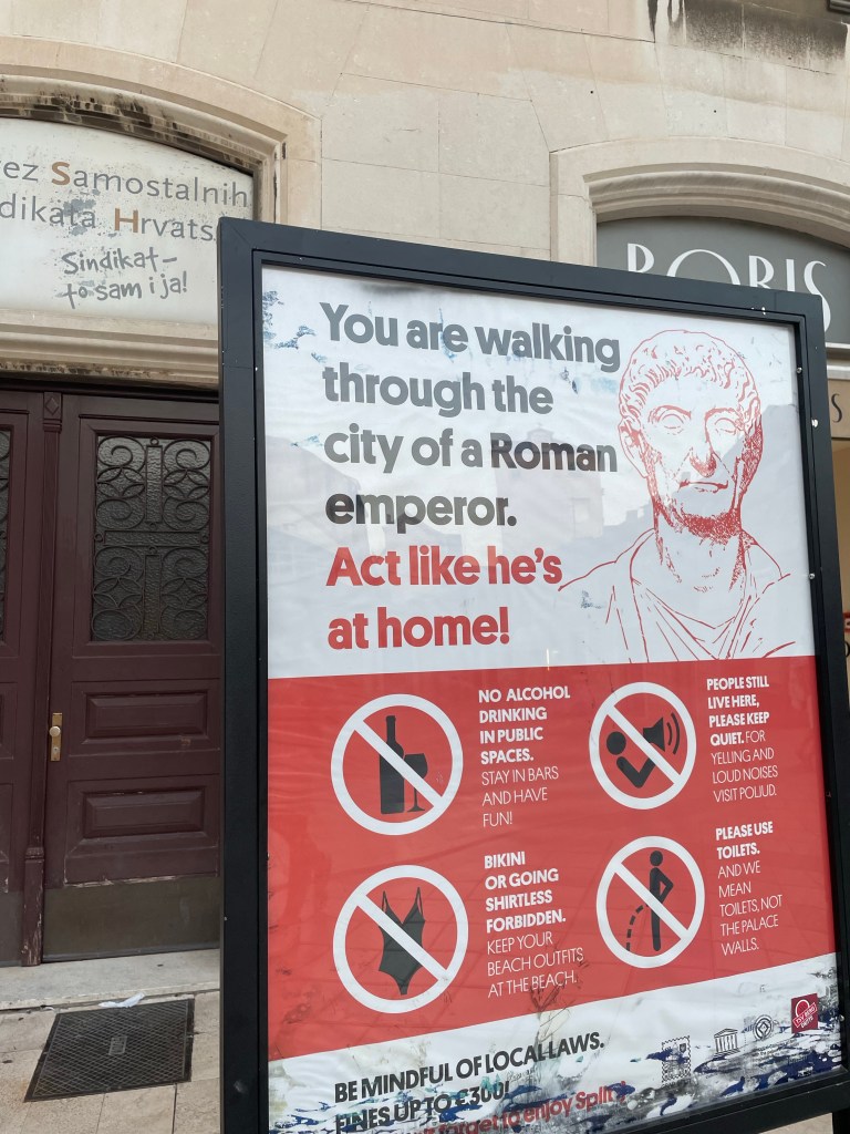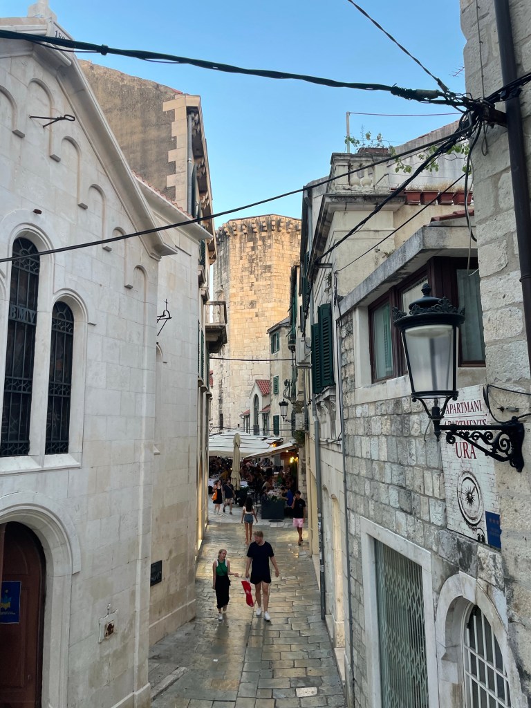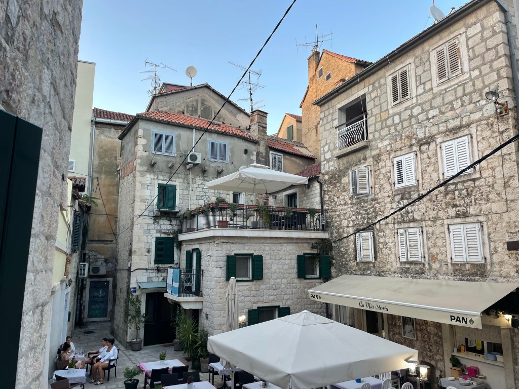 The next day was busier. I got up and dropped off my bags at a short term storage place, then tried to find church. Google maps was only partly helpful and in the end I found it because I recognized the type font. I was very late. After church I went on a walking tour of Split and learned that I was right, it was a Roman town, more specifically, a palace. A Roman Emperor had grown up there and when he decided to do what no other Roman Emperor had done and retire, he did so here. He built a massive palace with big fortifications, a big burial shrine for himself, a temple, and an extensive cool storage area underneath. When the Roman Empire fell, Slavs came in and invaded and then lived inside, where people still live today. There aren’t actually very many people now, it is mostly Airbnb’s. Croatia was at a big crossroads as far as the East and West so they were religiously complicated, invaded by the Venetians, the Germans, under the rule of Mussolini, bombed by the Allies, taken over by the Soviets and turned into Yugoslavia, and eventually turned into a tourist town.