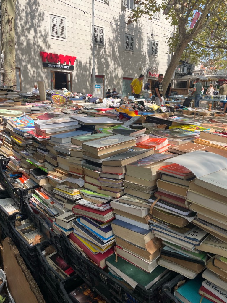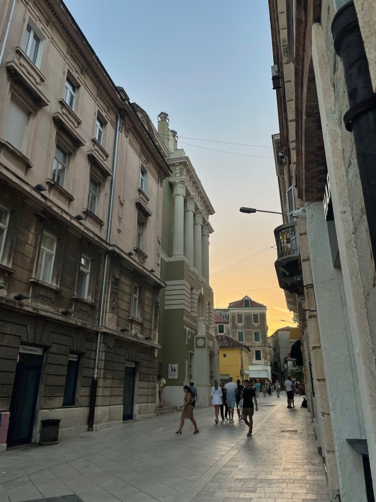 I left Rome at 6am (having woken up at 3) so I got into Split at 8am with time to kill; I couldn’t check into my Airbnb until 3pm. After taking the bus from the airport to the city center, I went and sat in a café, got some breakfast, and promptly fell asleep. I woke up sweaty, hot, and angry. I walked to go drop off my bags and then found another café, this time one with air conditioning, where I ordered not only the worst lemonade I have ever had, but one of the worst parfaits. I didn’t care, it was 7 degrees cooler inside than out. After like 4 hours, I felt like I was cool enough to venture out and walk around. The city was incredibly beautiful, everything was carved out of this creamy limestone. Roman ruins were everywhere but people seemed to be living right inside them. There was a great farmers market with tons of food, clothes, books, and even a vintage porn magazine section. When I had about two hours left until I could check in, I plopped myself at yet another café where I again fell asleep. Finally I got into my Airbnb and settled in to air conditioning turned all the way up, taking off all my clothes, and lying on the floor.