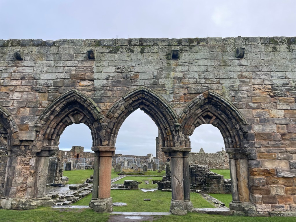 We did a day trip to St Andrews! It was rainy and moody and beautiful– and right on the sea! We went to the castle ruins, the cathedral ruins, the university (seeing if it seems like a place I would want to study next year: it passed!), and the golf courses. It was so much fun to spend the day with Illona and Jorden. After, we went out for drinks. Sunday Emily (my flat mate) and I went to see the author Dolly Alderton– she was very funny and her new book sounds great.
