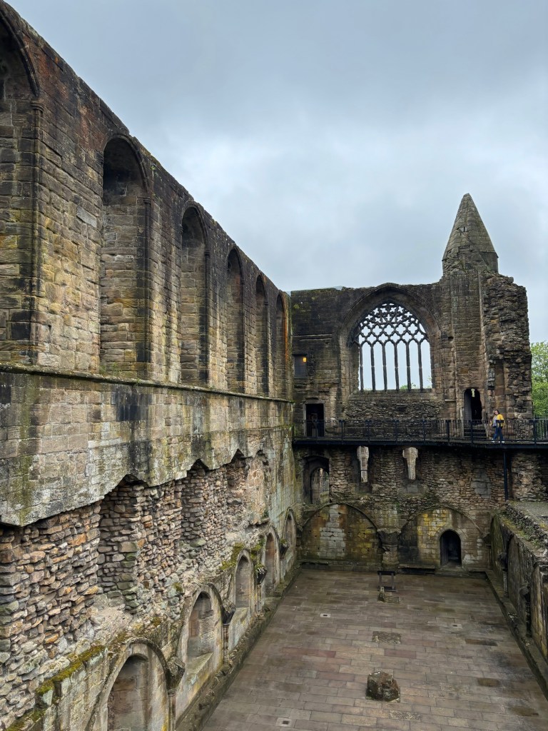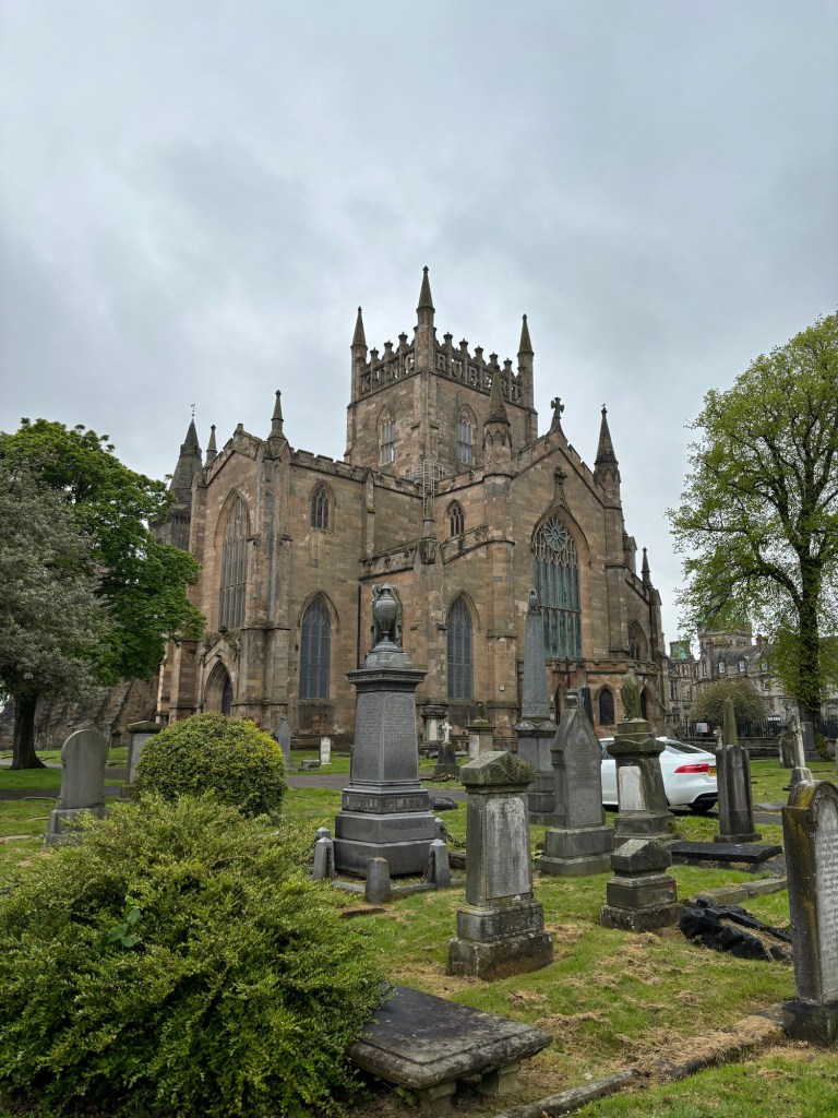 I picked Mom up from the airport, we got in a giant 8 seater van, and drove north. We stopped at Blair Castle which had every gun that the family had ever owned (approx. 4000000) on the walls. It was gorgeous country though. We also stopped at Dunfermline Abby where Robert the Bruce was buried. Later we found out that we have ancestors that were born there! Anyway, we got a parking ticket.
