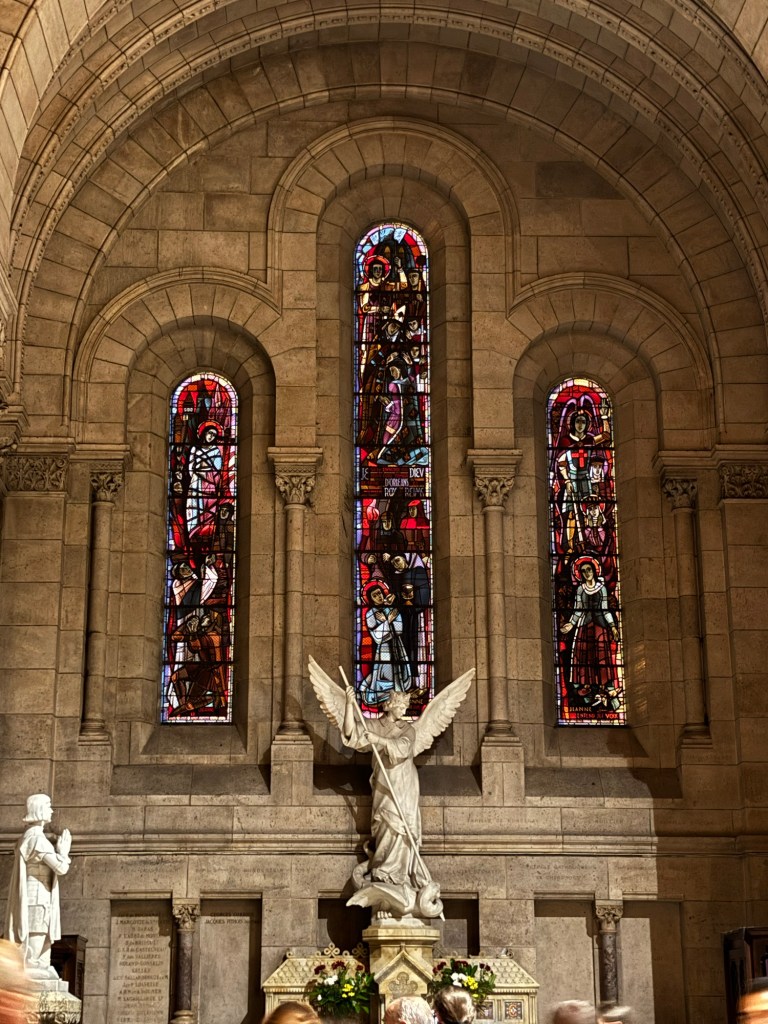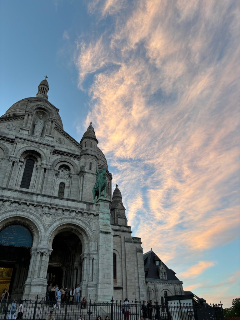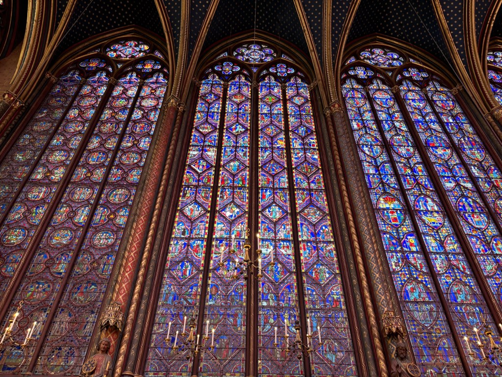 Big beautiful churches! The stained glass in Sainte Chapelle is from the 13th century which is insane, if anyway is mean to the middle ages I am going to show them these pics and be like oh ya?? a time of great darkness you say?? stop that Romanophilia and open your eyes!! Can you imagine being a middle ages peasent and you get to go in Sainte Chapelle? You would pass out. You would think of heaven. You would believe in God, I’ll tell you that. Talk about the word made art– all the panels are bible stories! Incredible place. Sacre-Coeur tries to kill you with stairs but it really was so nice with the sun setting and mass and the nun with a pretty voice singing French hymns.